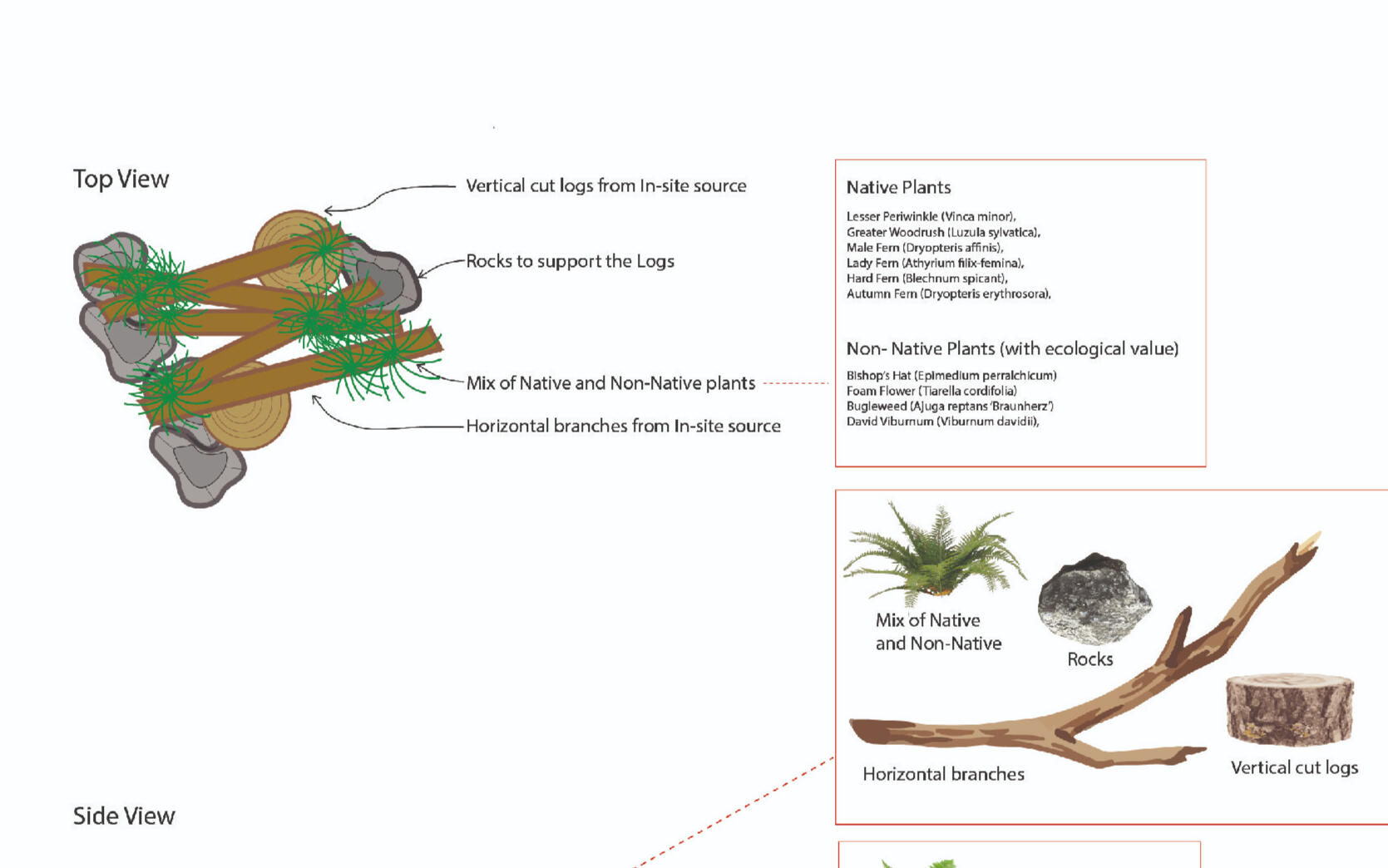 Reviving Life through Community and Ecological DesignThe Copper Beech Dead Habitat Project at Ray Mill Island, Maidenhead, is where community collaboration and ecological care meet. What began with a semi-dead copper beech-its roots compacted and struggling, became a story of renewal and habitat creation.Instead of removing the declining tree, we transformed it into a living habitat feature that supports biodiversity and celebrates resilience. Working with the Friends of Ray Mill Island (FoRMI), we designed an environmentally friendly, low-cost solution achievable by volunteers of all ages.Natural materials from previous tree works were repurposed to form a “dry hedge”, weaving branches into a protective barrier around the beech. This simple yet effective structure prevents soil compaction, retains organic matter, and creates valuable shelter for insects and small wildlife.Around the tree, wildflowers were sown to attract pollinators and bring seasonal colour, turning a once-declining tree into a vibrant centrepiece of ecological value. The project exemplifies how creative, sustainable design and community action can enhance biodiversity while deepening our connection to the natural world.